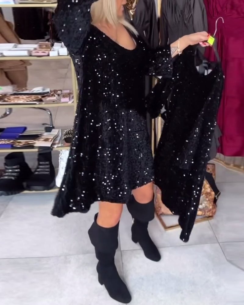 Velvet Sequined Dress With Wide Neckline