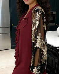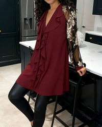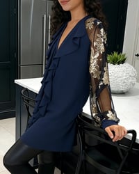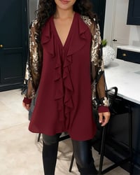 Fashionable Mesh Lotus Leaf Loose Blouse