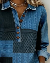 Printed Long-Sleeved Button-Down Sweatshirt