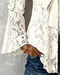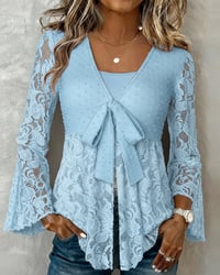 Solid Color Bell Sleeve V-Neck Blouse