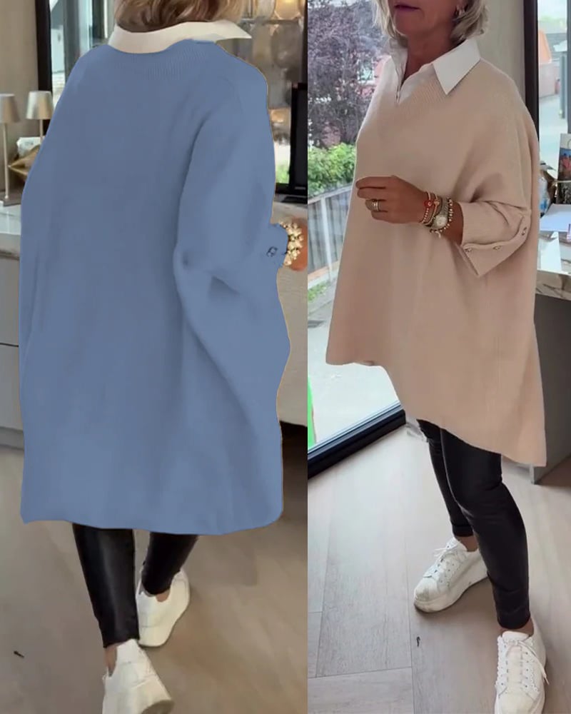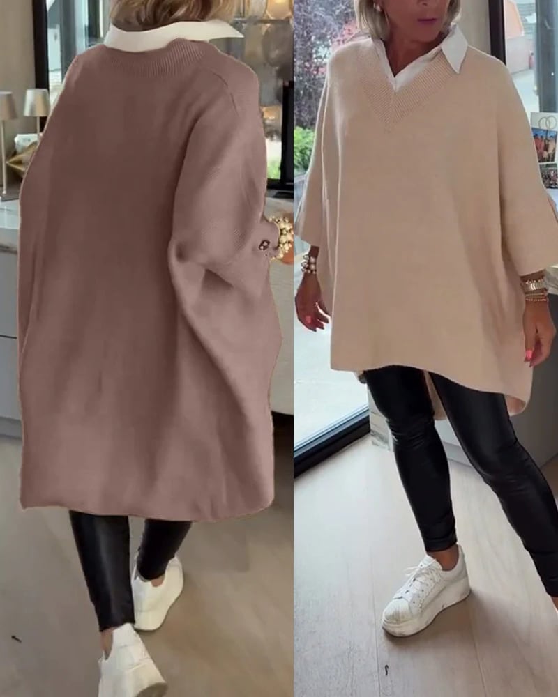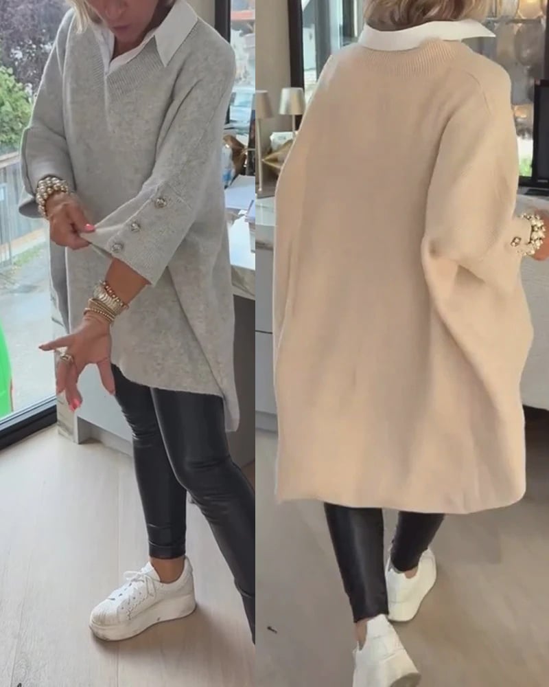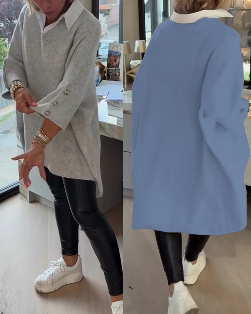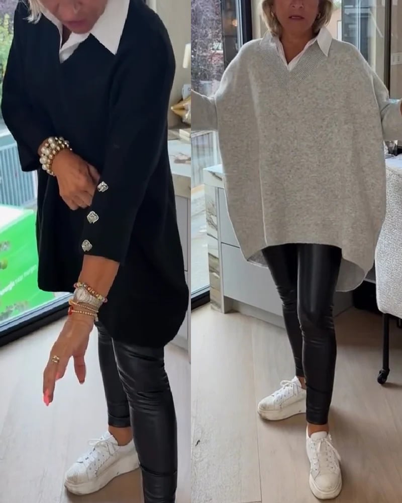 2-V-Neck Buttoned Asymmetrical Sweater